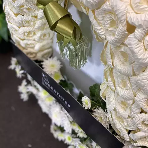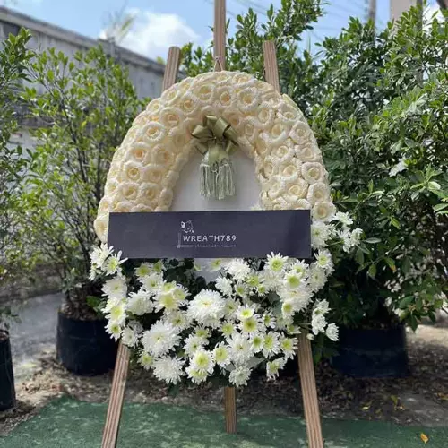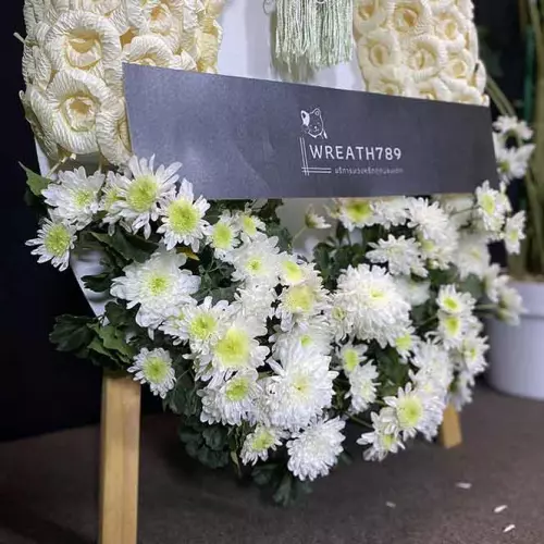 - ป้ายพวงหรีดข้อความใหญ่ มองเห็นเด่นชัด มีแบรนด์โลโก้ได้