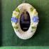 - เป็นดอกไม้สดทั้งวงรี ขนาด 93x63 ซม. การจัดดอกไม้จะเลยขอบกระดานมาเล็กน้อย