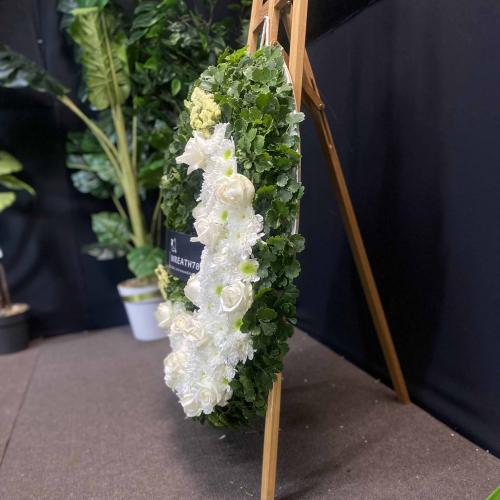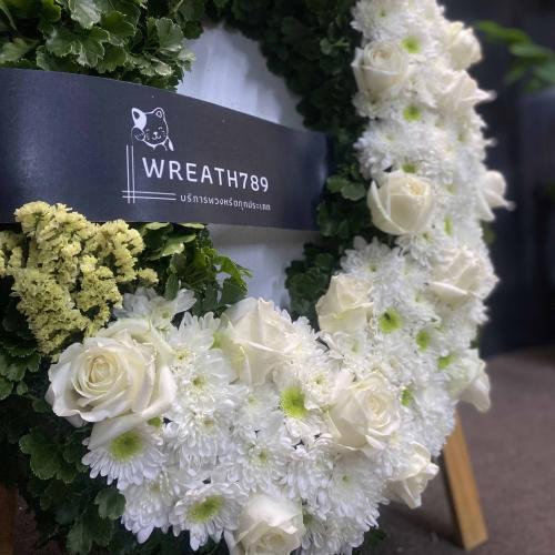 - ใช้ดอกไม้ ดอกสแตติส ดอกกุหลาบสีขาว ดอกโมนา ดอกมัมสีขาว และผักซีใบไม้